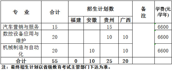 衢职院2019年分类招生计划一览表--福建、安徽、贵州、广西