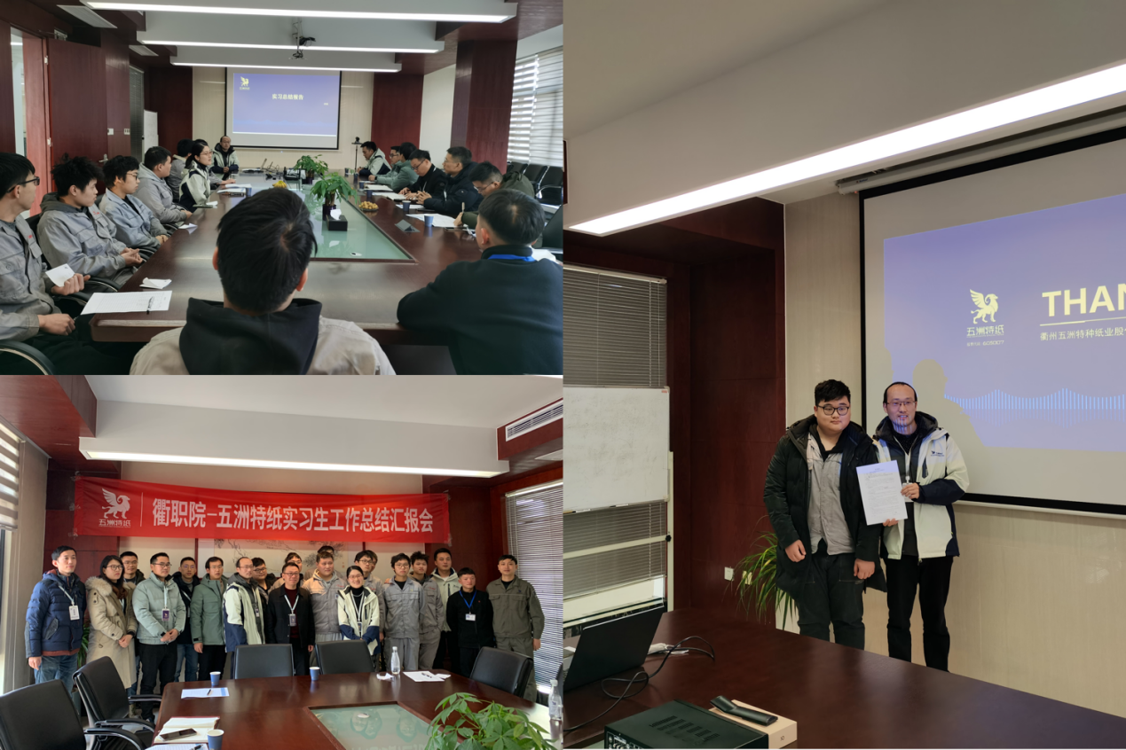 首先由在岗实习员工汇报实习情况,实习员工统一着装,精神饱满,通过PPT展示,就各自在工作、技能提升、沟通能力和生活畅所欲言。汇报结束后,校企双方就接下来人才培养、毕业生留衢发展的具体举措深入交换了意见。校方感谢企业提供实习岗位,利用“传帮带”模式促进员工全面发展,肯定员工在岗期间综合能力的提升;同时希望通过跟岗实习的方式加强校企双方合作力度,共同营造留住人才的良好环境。企业结合自身快速发展的需求,望尽快与伟德中国官网达成长期密切合作,在“点”的努力基础上扩大到“面”的发展,通过开办“五洲特纸班”,将留住人才持续做下去。