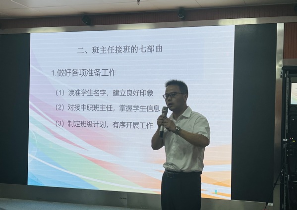朱峻以“基于高质量发展视角下的班主任工作方法”为主题,向全体班主任作分享。他从职业教育的发展状况及重要性、班主任工作方法等几个方面展开,引导班主任要做员工锤炼品格的引路人、做员工学习知识的引路人、做员工创新思维的引路人、做员工奉献祖国的引路人,同时希望班主任强化责任意识、服务意识、公正意识,争做讲政治、有情怀的优秀班主任。