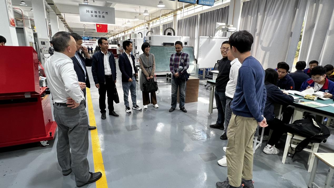 随后在刘健书记的带领下,先后参观了数控加工实训中心、智能制造实训中心、智能技术综合应用中心、自动化及工业机器人技术实训室等公司产品场所。